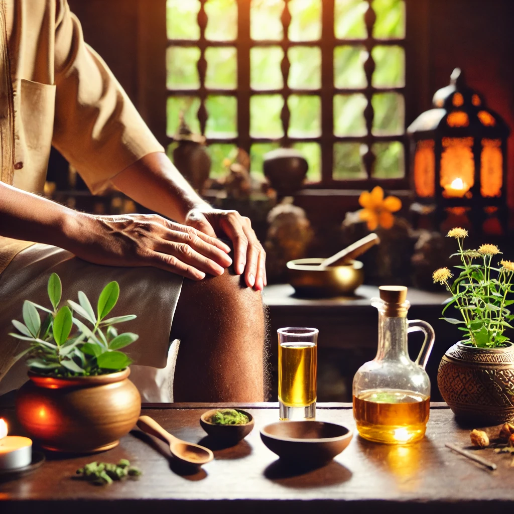 • Abhyanga (Ayurvedic Oil Massage): Warm medicated oils are massaged into the body to relieve stiffness and nourish the joints.